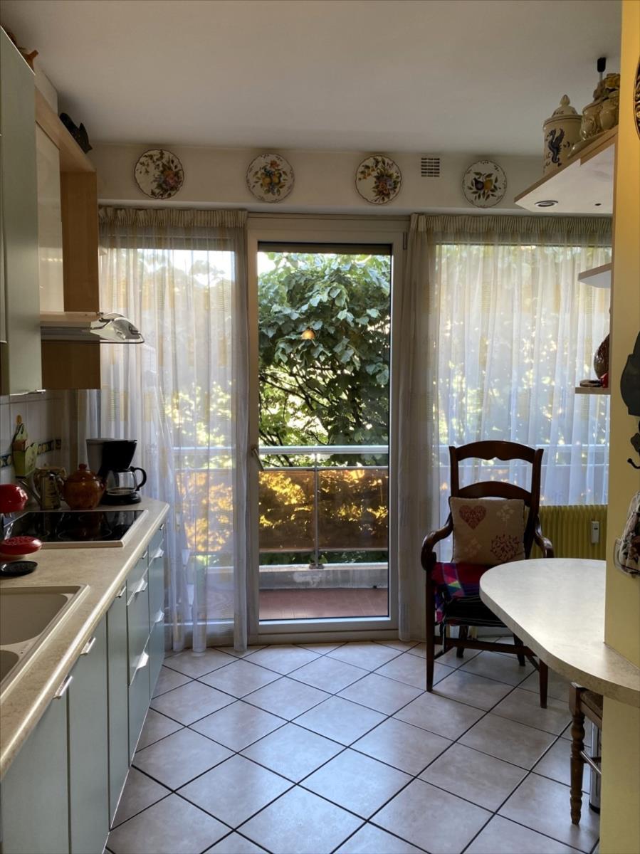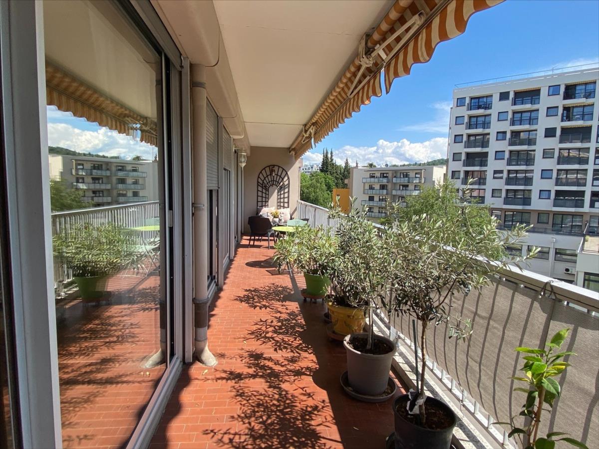 Il distribue une vaste entrée, une cuisine séparée et équipée, le séjour de 41 m², des toilettes avec lave-mains, puis un coin nuit comprenant deux belles chambres dont une avec dressing et une salle de bains.A noter : toutes les pièces s’ouvrent sur deux balcons de part et d’autre de cet appartement traversant, conférant à ce bien 30 m² d’extérieurs. Côté Avenue du Comte Vert, la végétation confère à cet appartement une fraicheur très agréable lors des épisodes de canicule.Les huisseries sont en aluminium double vitrage (2021) et les volets roulants automatisés (2022), permettant à cet appartement d’obtenir une notable étiquette DPE en C.Une Cave et un parking (dans cour privée fermée) complètent ce bien.