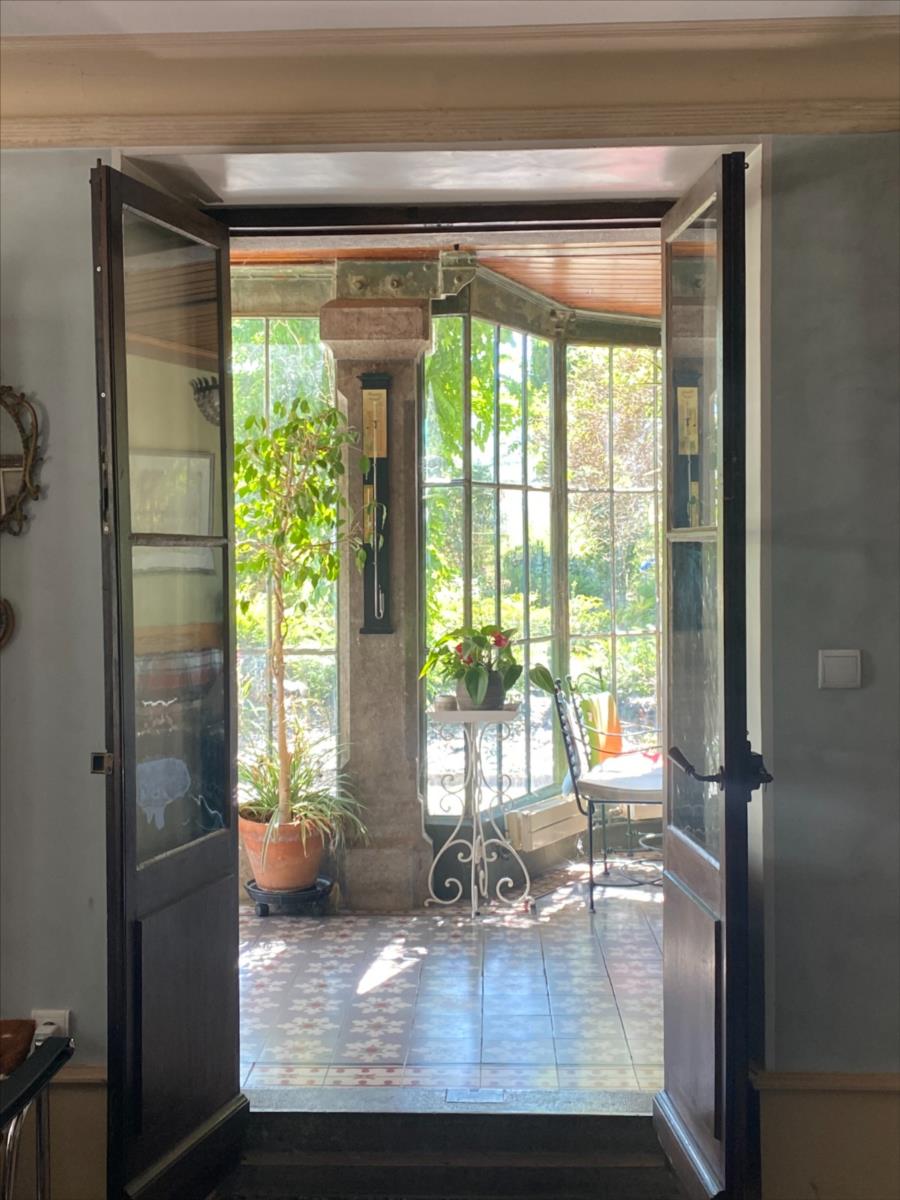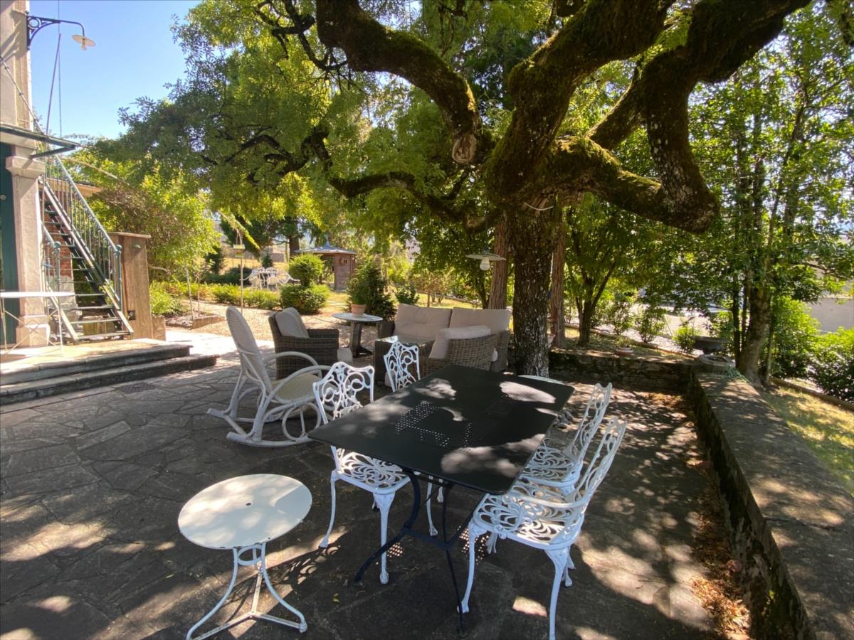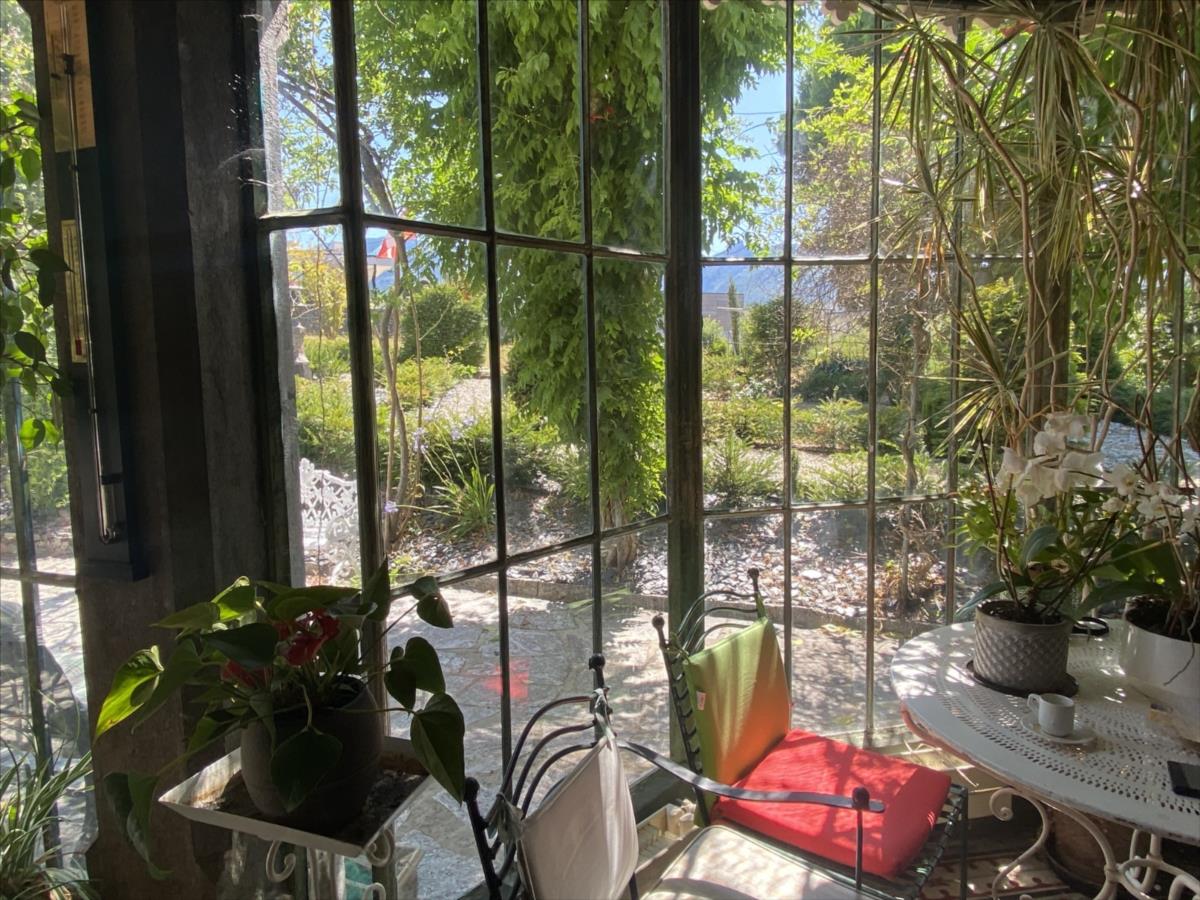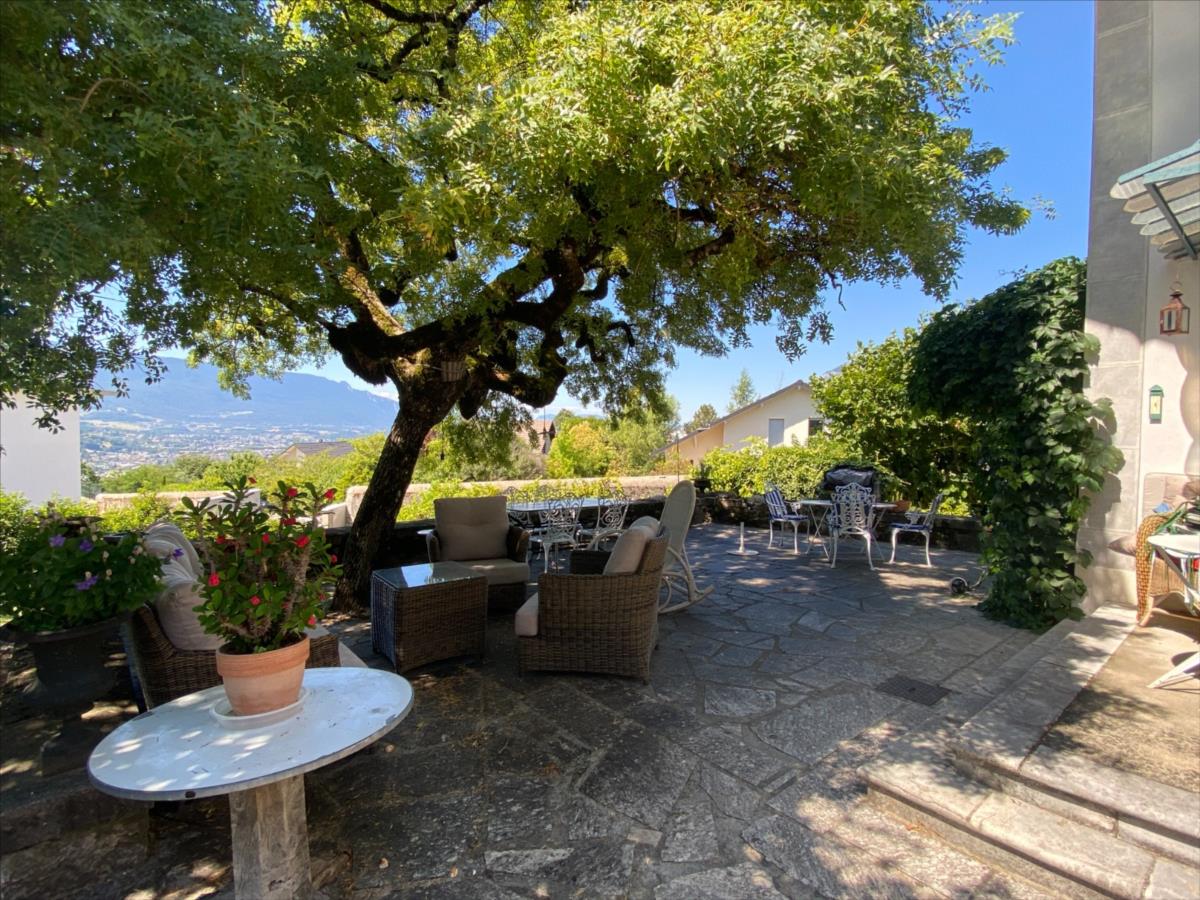 Elle distribue au rez-de-chaussée une agréable véranda en fer forgé, un premier salon, une salle à manger, une cuisine dinatoire séparée ouvrant sur une agréable terrasse ombragée, sans oublier les annexes (atelier, cellier, buanderie-chaufferie).L’étage dessert cinq chambres (dont deux en enfilade et une donnant sur un bureau avec vitraux séculaires), deux salles de bains, une salle d’eau, un second salon avec cheminée et plafond orné, ouvrant sur le solarium.